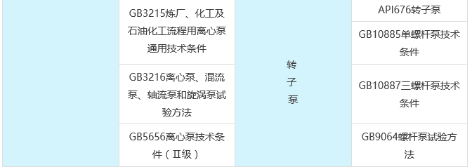 (6)泵的設計、制造、檢驗應符合有關(guān)標準、規(guī)范的規(guī)定,常用的標準和規(guī)范見下表 :