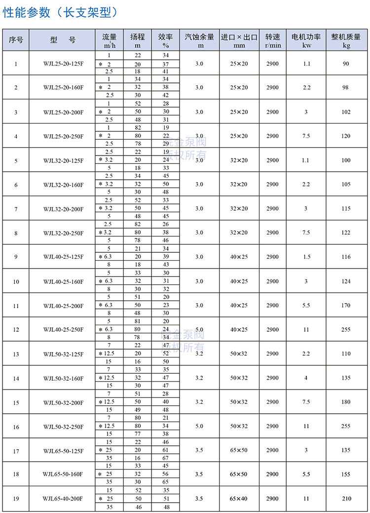 皖金泵閥襯氟離心泵主要參數(shù):